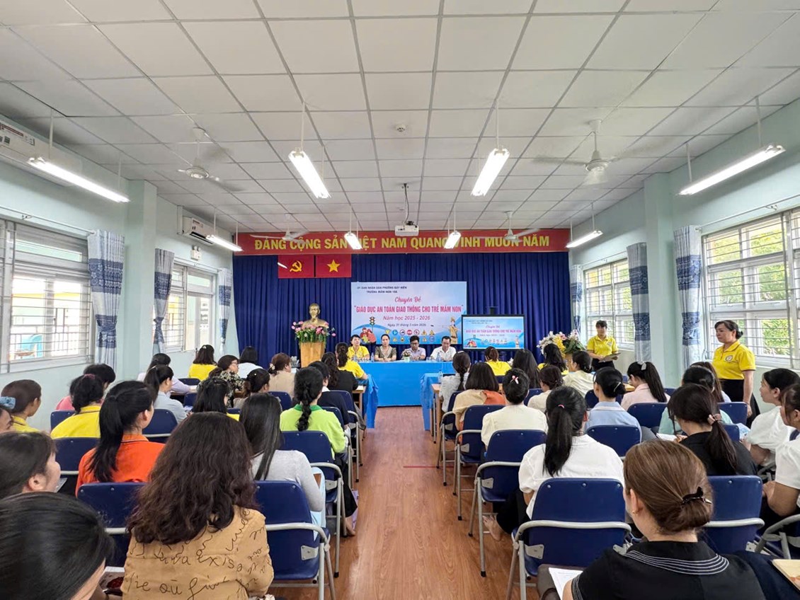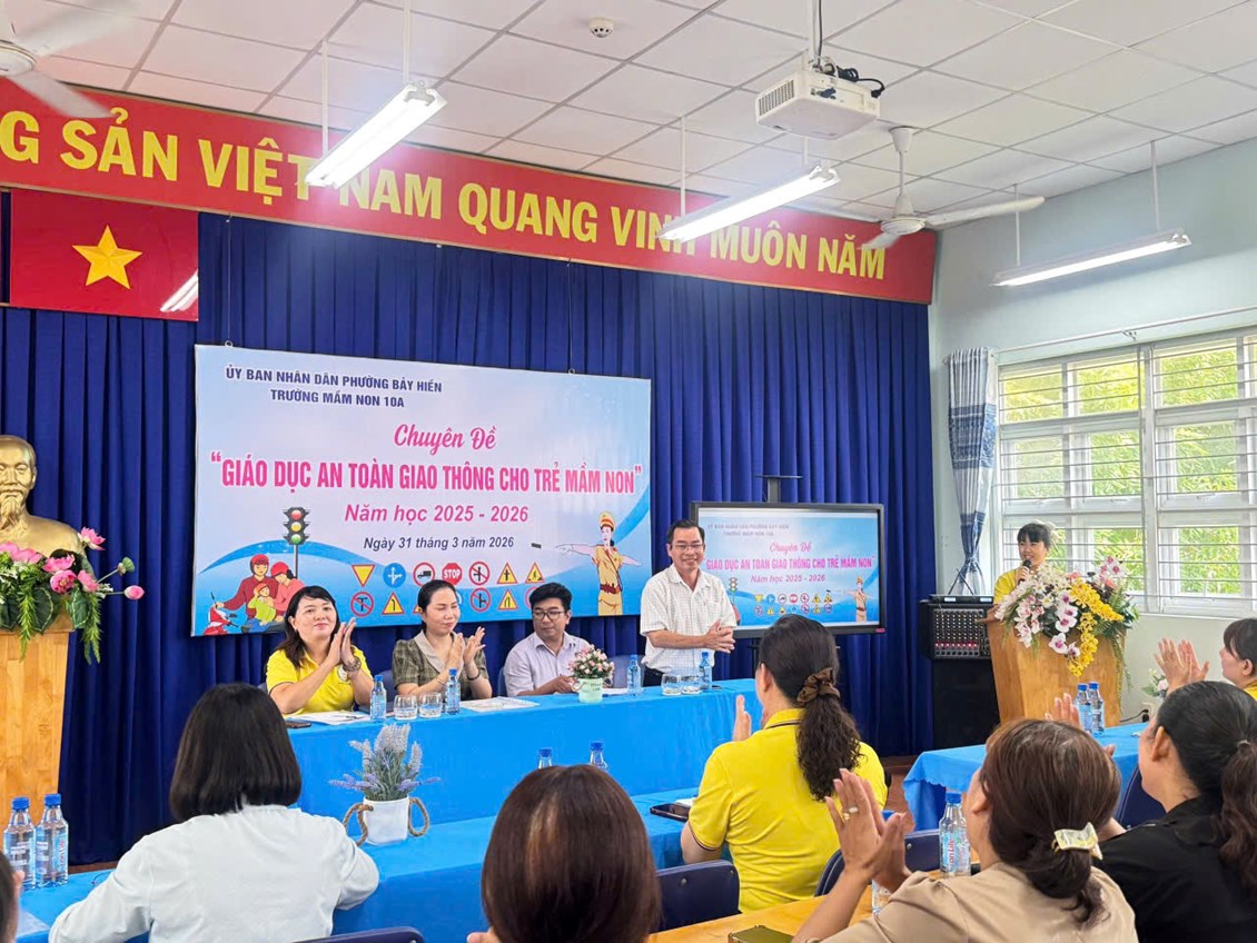 Nhằm trang bị kỹ năng và nâng cao chất lượng giảng dạy về an toàn giao thông (ATGT) cho trẻ, vừa qua, Trường Mầm non 10A (Phường Bảy Hiền) đã tổ chức thành công chuyên đề “Giáo dục an toàn giao thông cho trẻ mầm non” năm học 2025 - 2026.