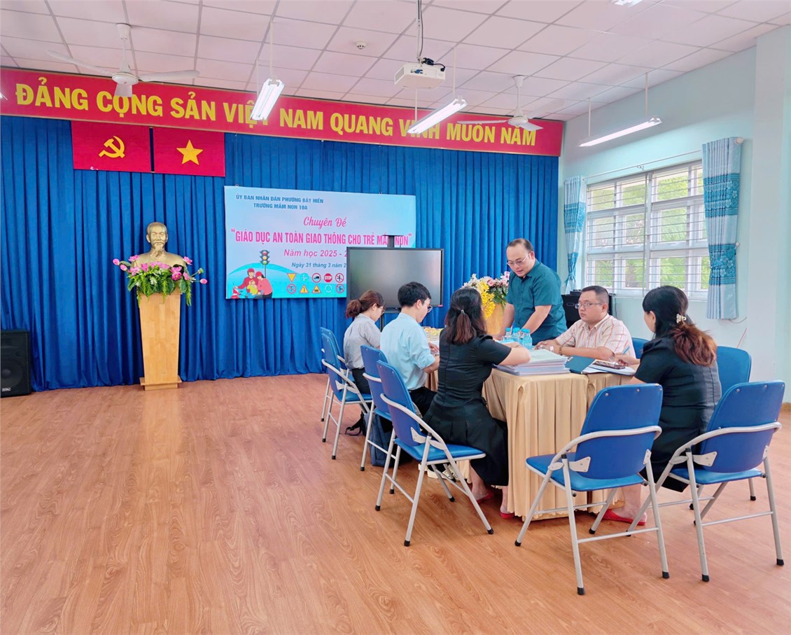 Sáng ngày 15/4/2026, Trường Mầm non 10A đã đón tiếp Đoàn kiểm tra, đánh giá công tác y tế trường học của phường Bảy Hiền đến làm việc tại trường. Đoàn đã tiến hành kiểm tra toàn diện công tác y tế trường học bao gồm: vệ sinh phòng dịch, công tác đảm bảo an toàn thực phẩm, công tác theo dõi sức khỏe định kỳ cho trẻ.